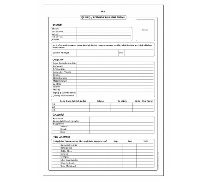 İşe Giriş Periyodik Muayene Formu EK-2 adet