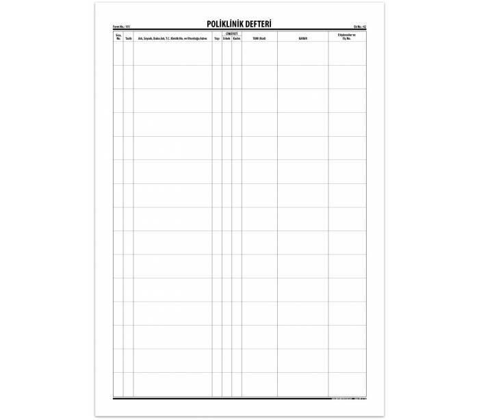 • Poliklinik uygulamaları kayıtları için hazırlanmış defter,